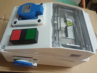 Cuadro eléctrico con tomas d enchufes laterales y una principal , La cual se activa con el interruptor de marcha,paro. Protección magnetotermica y diferencial.
