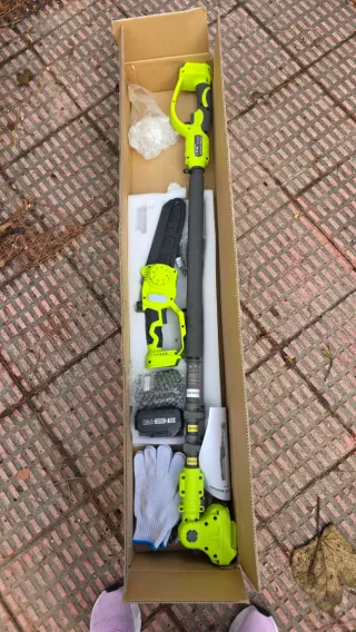 Se vende podadora, motosierra de pértiga eléctrica nueva (Sin uso) en su caja original, con todos sus accesorios. - Incluye batería recargable. - Viene con guantes de protección. - Incluye manual de usuario.