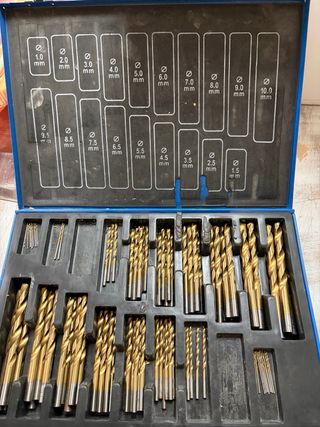 Set de brocas de alta calidad para uso profesional. - Brocas de diferentes tamaños. - Fabricadas en metal dorado.