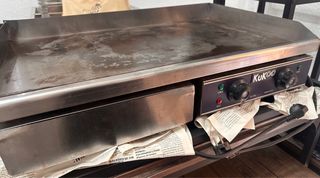 Plancha eléctrica industrial de la marca Kukoo, ideal para uso profesional en restaurantes o negocios de hostelería. Su superficie de cocción es amplia y plana. - Placa de cocción lisa. - Controles de temperatura ajustables. - Construcción robusta de acero inoxidable.