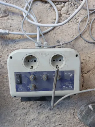 Controlador de clima y ventilación SMSCOM SPC con sonda de temperatura. - Dos enchufes Schuko. - Interruptor ON/OFF/AUTO. - Control de temperatura y velocidad del ventilador.