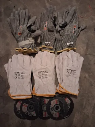 Lote de guantes,discos,brocas y machos de roscar