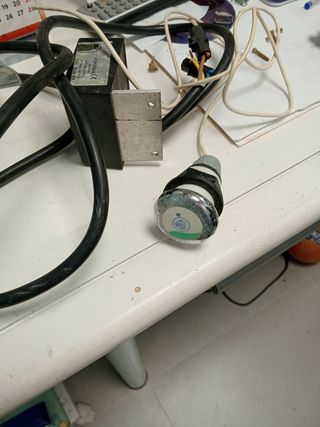 Pulsador neumático de la marca CONTROLCE. - Voltaje: 220V, 50/60 HZ. - Número de serie: 005979. - Modelo: 407/040528/02.