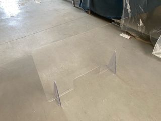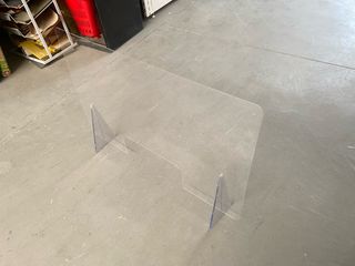 Pantalla protectora de metacrilato transparente. - Ideal para mantener la distancia de seguridad. - Con soportes para colocar en superficies. - Medidas aproximadas 90x60 - Disponibles varias unidades