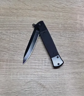 Cuchillo de colección con hoja negra y mango texturizado. - Hoja de acero. - Mango con empuñadura antideslizante. - Mecanismo de apertura lateral. Se pueden hacer pack más económicos y en un solo envío si se eligen 3 o más cuchillos preguntar sin compromiso, echa un vistazo a todo lo que tengo en mi perfil gracias.
