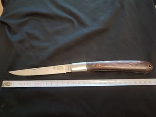 Preciosa navaja Albainox Toledo Imperial, con hoja de acero inoxidable. Es una pieza elegante y en buenas condiciones. - Hoja de acero inoxidable. - Mango de madera oscura. - Cierre de mariposa. - Marca Albainox Toledo Imperial.