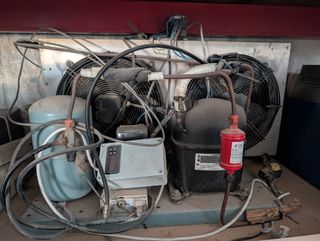 Equipo de refrigeración industrial, ideal para cámaras frigoríficas. - Compresor robusto. - Dos ventiladores de alta potencia. - Filtro deshidratador rojo. - Panel de control remoto.