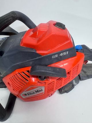 Motosierra Oleo-Mac GS 451 en color rojo y negro. - Diseño robusto y ergonómico. - Barra de corte de 45 cm.