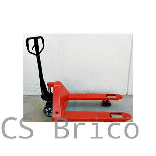 TRANSPALETA HIDRAULICA ELEVADORA MANUAL 2500 KG - 1150x540 MM DESCRIPCION: Fabricación Nacional Traspaleta de elevación manual con horquillas de 1.150 mm de largo y 540 mm de ancho. Alta capacidad de carga, hasta 2.500Kg. Timón de dirección con muelle de retorno. Rueda del timón de 200 milímetros de goma elástica, y dobles rodillos delanteros de 80 mm de poliuretano, que permiten una fácil maniobra incluso en espacios reducidos. Válvula de seguridad que impide el ascenso cuando la carga excede la capacidad máxima. Cojinetes autolubricados para prevenir daños y mejorar su mantenimiento, asegurando una vida más larga. CARACTERIST...