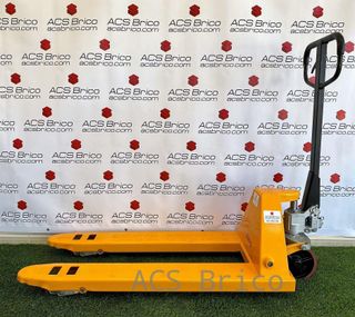 ¡Unidades limitadas! ¡Realiza tu compra ya! TRANSPALETA FRUTERA HIDRAULICA ELEVADORA MANUAL 2500 KG - 1000X685 MM - FRUTERA DESCRIPCIÓN: Traspaleta FRUTERA con elevación manual con horquillas de 685 mm de ancho, para palets de fruta. Alta capacidad de carga hasta 2.500Kg. Está diseñada para manipular cargas en áreas de espacio limitado, como ascensores, montacargas o camiones. Cuerpo de la bomba de fundición nodular de una pieza. Bomba reforzada de alta capacidad. Émbolo y pistón cromados. Descenso rápido sin carga, más despacio con carga. Chasis equipado con rodillos de entrada y salida. CARACTERÍSTICAS TÉCNICAS: Normativa CE 2...