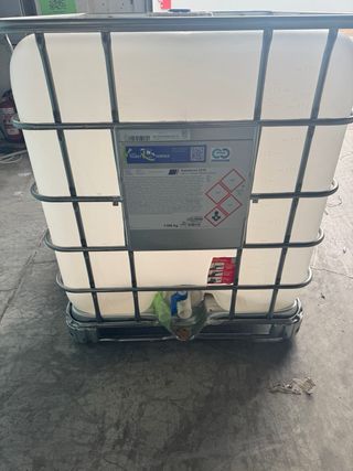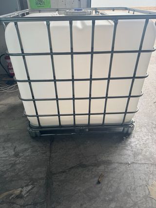 Bidones IBC de 1000 litros En muy buen estado. Depósito de plástico resistente con jaula metálica galvanizada, tapa superior roscada y válvula inferior de salida. Ideales para almacenamiento de agua, riego, usos industriales, agrícolas o limpieza. Capacidad: 1000 L. Listos para usar. Transporte fácil con transpaleta o carretilla.