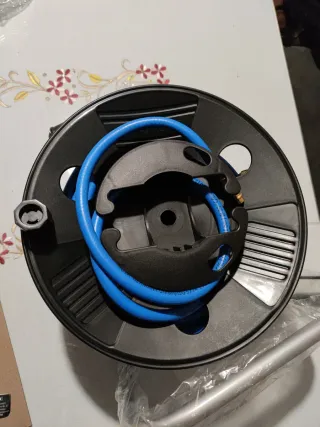 20 mwnrow. Manguera para aire comprimido enrollada en su soporte. - Conector metálico.