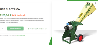 La trituradora eléctrica R70 de Negri es una excelente opción para jardines de tamaño mediano y pequeño. Es conocida por su eficiencia, facilidad de uso y bajo nivel de ruido. Características Destacadas del Modelo R70 Eléctrico: • Potencia: Equipada con un motor eléctrico de 1800W, ofrece un rendimiento sólido para triturar ramas de hasta 45mm de diámetro. • Seguridad: Cuenta con un sistema de seguridad patentado que garantiza un uso seguro y fácil, evitando accidentes. • Eficiencia: Su cuchilla de rotor de doble filo aumenta la eficiencia de corte, reduciendo el tiempo necesario para triturar. • Compacta y fácil de usar: Su tamaño