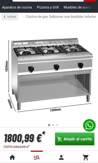 Cocina industrial -Cocina de gas 3xBurner con bastidor inferior -3 quemadores (37 kW) incl -horno de gas estático (6 kW) -Venta en persona Cualquier duda pregunte