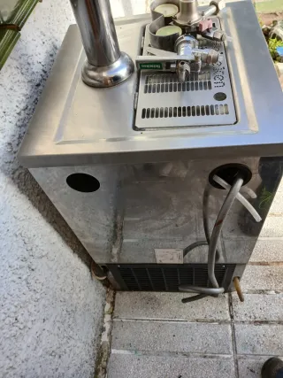 Equipo dispensador de cerveza Heineken. - Fabricado en acero inoxidable. - Incluye regulador de gas - Barril de cerveza de acero inoxidable.