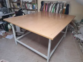 Mesa de gran tamaño, ideal para patronaje y corte. - Tablero de 30mm de grosor. - Desmontable fácil. - Superficie de madera clara. - Estructura metálica resistente.