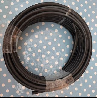 Rollo de tubo negro para riego. - Diámetro exterior aproximado: 16 mm. - Material: Polietileno. - Color: Negro. unos 20 mts goteo