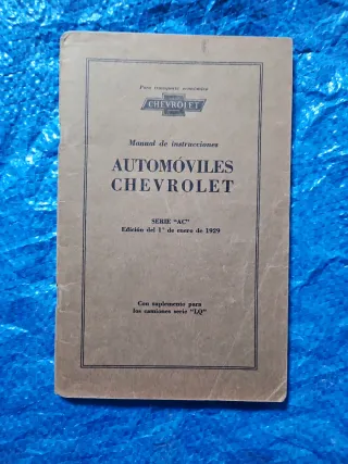 Manual de instrucciones para automóviles Chevrolet. - Edición del 1º de enero de 1929. - Serie AC. - Incluye suplemento para camiones serie LQ.