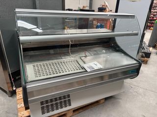 Vitrina expositora con sistema de refrigeración y acabado en acero inoxidable.
