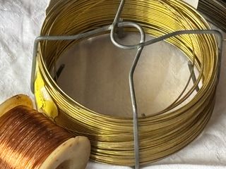 BOBINAS/ROLLOS, de laton manojo mayor de 0,5 mm de grueso; laton el manojo menor de 0,7mm y la bobina de cobre de 0,15 mm. Precio por todo, como indicacion el manojo mayor que es de gran metraje pesa 225gr.