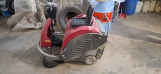 Barredora industrial Puma 1100 en color rojo y negro. Electrica, va con baterías y cargador. - Ideal para limpieza de grandes superficies. - Diseño robusto y funcional.