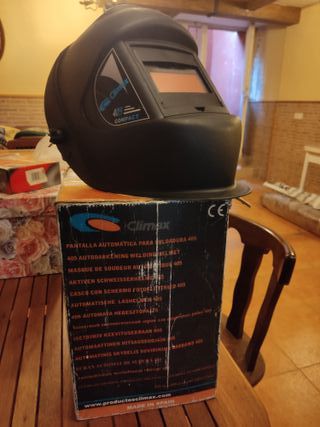 Máscara de soldadura negra, en buen estado. - Ideal para proteger los ojos y la cara durante la soldadura. - Diseño cómodo y ligero. - Material resistente y duradero.