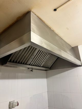 Campana extractora de acero inoxidable, ideal para uso industrial o profesional. Su diseño robusto y acabado brillante la hacen perfecta para cocinas de restaurantes o negocios. - Material: Acero inoxidable. - Tipo: Industrial. Solo venta a quien pueda venir a desintalarla y llevarsela.
