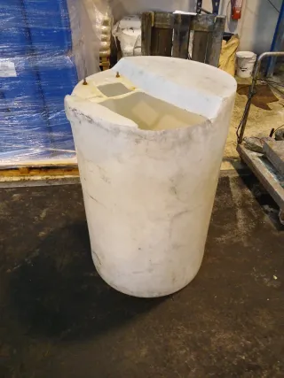 Contenedor cilíndrico para líquidos. - Material: Plástico blanco. - Forma: Cilíndrica - Aberturas en la tapa.