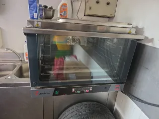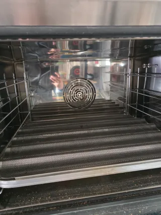 Horno industrial de la marca RMG ideal para panadería y pastelería. Diseñado para un uso profesional. - Puerta de cristal para visualización. - Panel de control digital. - Interior con guías para bandejas. - solo uso 6 setmana