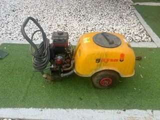 Cuba para sulfatar de la marca Gaysa, con motor de gasolina. - Depósito amarillo. - Rueda para transporte. - Manguera enrollada. Necesita puesta a punto , bujía Procede de herencia , yo no la uso