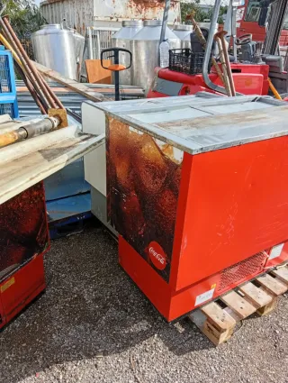 Nevera botellera con diseño de Coca-Cola, ideal para bares o establecimientos. Precio...230 unidad - Color rojo. - Diseño con imagen de Coca-Cola. - Base de madera para soporte.