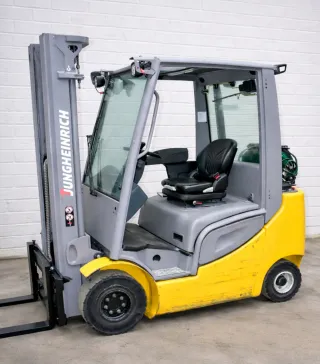 Carretilla Elevadora GAS. Capacidad 2000 kg Elevación Max 5000 mm Mastil Tríplex Replegado 2.200 mm Desplazador lateral integrado Semicabina. Normas de seguridad Focos delanteros y traseros Luz seguridad BLue Spot Envío disponible para toda peninsula Consulta condiciones de venta Precio indicado sin IVA ni transporte incluido