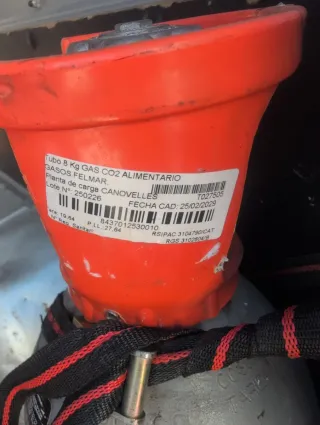 Bombona de gas CO2 alimentario vacía. Boca para estrella Galicia y un barril lleno de 30 L - Tipo de gas: CO2 Alimentario