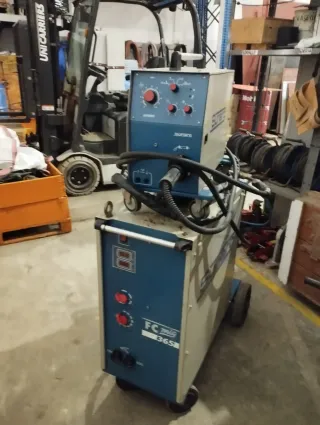 Soldadora FC MIG 365 en buen estado. - Panel frontal con diales y display. - Ruedas para fácil movilidad. - Diseño robusto.