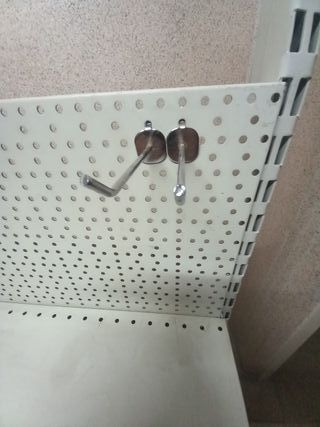 Estantería expositora metálica, ideal para colgar productos. - para el Panel perforado de la estanteria expositora. - Tengo más de 30 ganchos venta a 1,5 € unidad