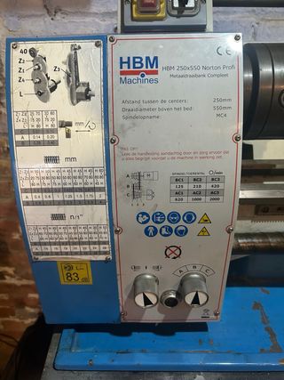 Torno para metal HBM 250x550 Norton Prof. - Caja norton para hacer roscas métricas y pulgadas. - Incluye plato de 4 garras - plato fijo - herramientas de trabajo -incluye brocas -incluye machos de roscar y muchos mas utillajes y herramientas - funciona a 220 volt -bancadas en perfecto estado - torno a toda prueba