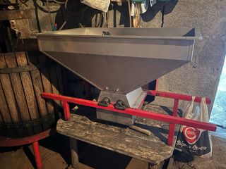 Estrujadora de vino fabricada en acero inoxidable, ideal para la preparación de uvas. - Material: Acero inoxidable. - Diseño robusto y duradero.