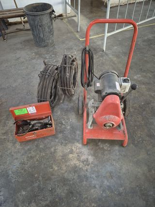 Se vende máquina desatasco tuberías, marca RIDGID KOLLMANN. Modelo BALDOR. Incluye dos mangueras metalicas de unos treinta metros, y además, caja metalica con muchas puntas para diferentes tuberías. - Ideal para desatascar tuberías. - Incluye mangueras metalicas. - Dispone de ruedas para facilitar su transporte.