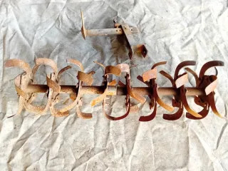 Roto-cultivador de metal, con cuchillas en espiral para trabajar la tierra. - Cuchillas de metal. - Eje central para acople.