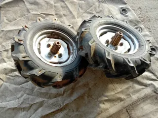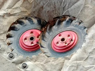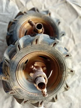 Par de ruedas para mula o motocultor. - Medida: 5.00-12. - Llantas metálicas. - Dibujo profundo para tracción.