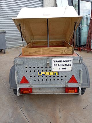 Remolque para transportar animales, en buen estado. Incluye documentación. - Marca: Urbeni - Con tapa superior - Dispone de espacio interior de madera - Ideal para el transporte de animales pequeños