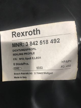 Burlete Bosch Rexroth ref 3842516598 rollo 10 metros precintado restos de stock precio rollo 80 €