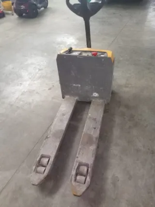 Transpaleta eléctrica en buen estado - Color amarillo y gris. - Diseño robusto para cargas pesadas. Cargador incorporado Funciona pero necesita revisar la elevación se apaga al conectar de hay el precio
