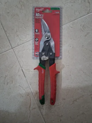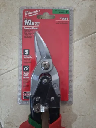 Tijeras de chapa Milwaukee con hojas forjadas. - Hojas forjadas para mayor durabilidad. - Protección contra el óxido. - Mango ergonómico para un agarre cómodo. - Diseño de aviación.