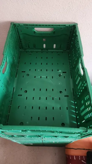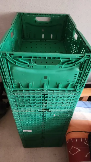 Conjunto de cajas de plástico resistentes, ideales para el transporte y almacenamiento de frutas y verduras. - Color verde. - Diseño apilable para optimizar espacio. - Material plástico duradero. Si te llevas las 30 cajas las dejo a 10 e si van sueltas a 15e