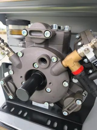 Bomba de atomizador de 120 litros y 50 bar. - Cuerpo de la bomba de fundición. - Depósito de aceite transparente.