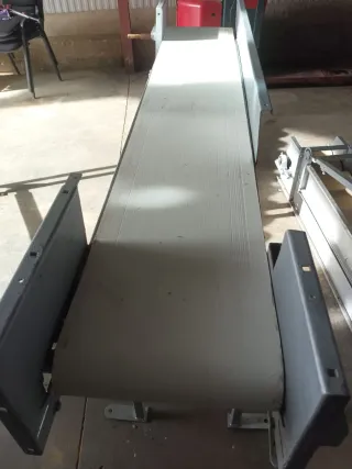 Cinta transportadora de uso industrial, ideal para mover materiales. Varias medidas 1.60 a 2.80 mt Las cortas 400 Largas 600 Elevadores 900 - Estructura metálica resistente. - Superficie de la cinta de color gris.