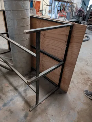 Se vende mesa de trabajo con estructura de hierro y tablero de madera. Medidas aproximadas son 2,5 metros de largo, 1,10 metros de ancho y 1 metro de alto. Se vende por falta de uso y espacio Precio algo negociable No hago envíos - Estructura de metal resistente. - Tablero superior de madera. - Estante inferior de madera.