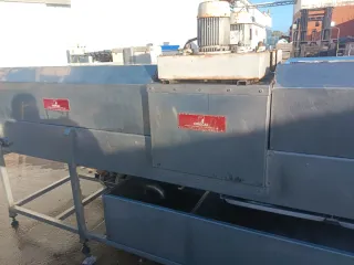 Equipo industrial para el lavado automático de cajas. - Fabricada en acero inoxidable. - Marca OMEGAL. Con agua caliente y cepillado Túnel de 4000 mm de lavado