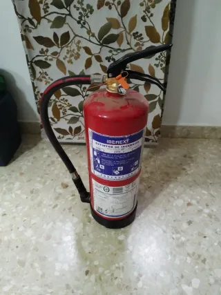 Extintor de incendios IBEREXT. - Modelo: ABC 6kg. - Presión de prueba: 18 bar. - Temperatura de servicio: -20°C a +60°C.